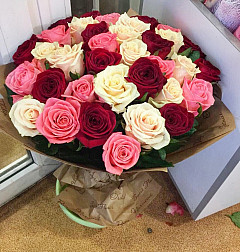 В мире не существует вещей ярче и веселее, чем букет из роз нескольких цветов. Тут и нежный белый, и влюбленный красный, и веселый желтый, и заботливый розовый. Цветы повысят настроение близкого человека, подарят множество эмоций и надолго запомнятся. Подарить разноцветные розы можно любимой или друзьям, а наградой будет радостный и благодарный взгляд.